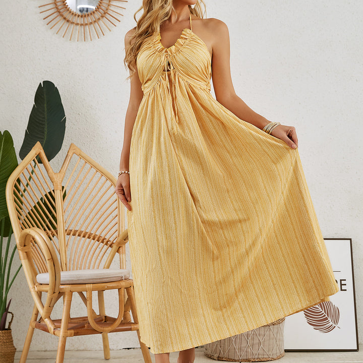 Bohemian Halter Maxi Dress - Women's Summer Sleeveless Flowy Beach Dress
