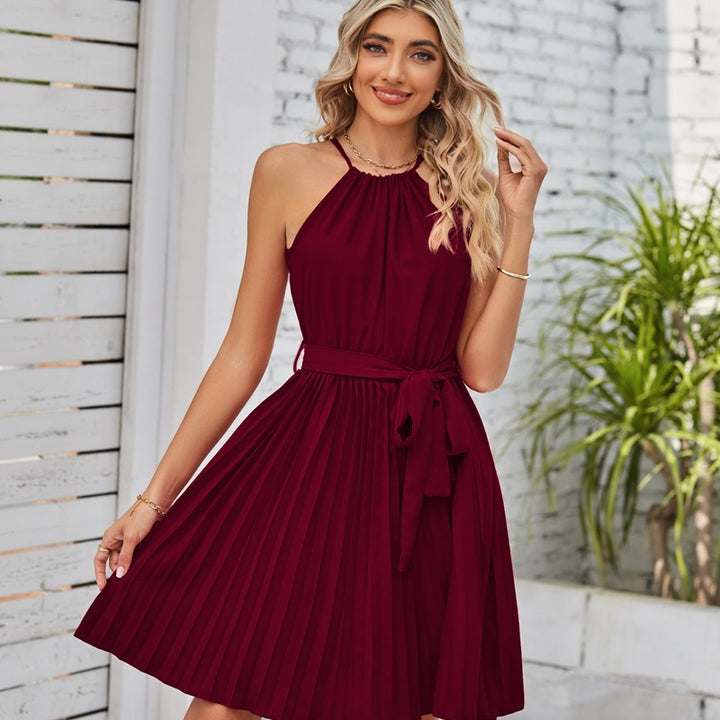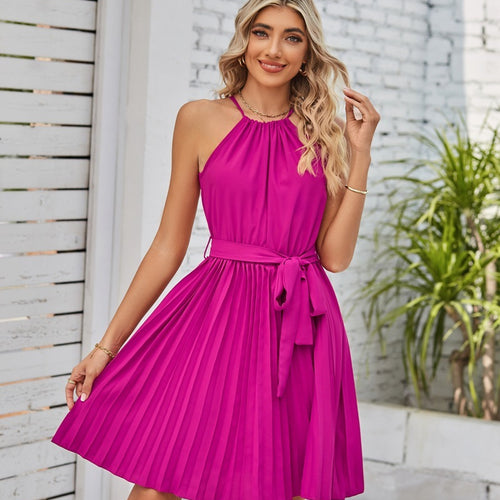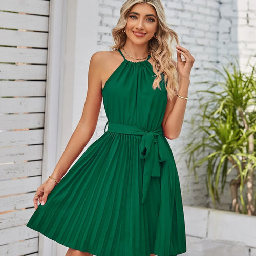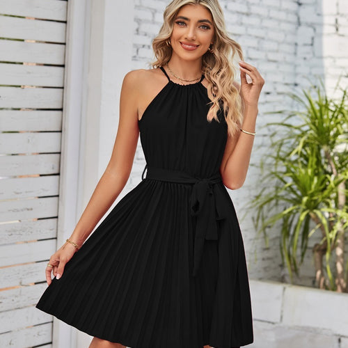 Halter Strapless Dresses For Women Solid Pleated Skirt Summer Beach Sundress