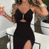 Ladies' Fashionable And Sexy Slim Fit V-neck Chain Dcor Cut High Slit Dress